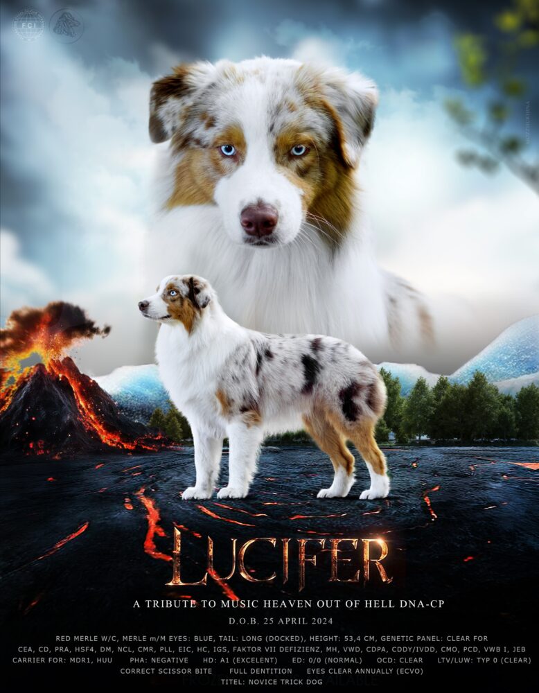 A Tribute To Music Heaven Out Of Hell DNA-CP *25.04.2024 Red Merle w/c Augen Blau / Blau ASCA FCI (…
