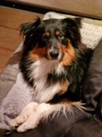 Trotz allem ist er ein echter Aussie mit allen Charaktereigenschaften. Er liebt sein Hundeleben, genießt Garten und Natur. Kuscheln kommt natürlich nicht zu kurz. Bett/Schlafräume und Couch is nicht! Er liebt es aber erhöht zu trohnen, Hundebett, Hocker, Gartenliegen. Vermutlich wegen dem Überblick.