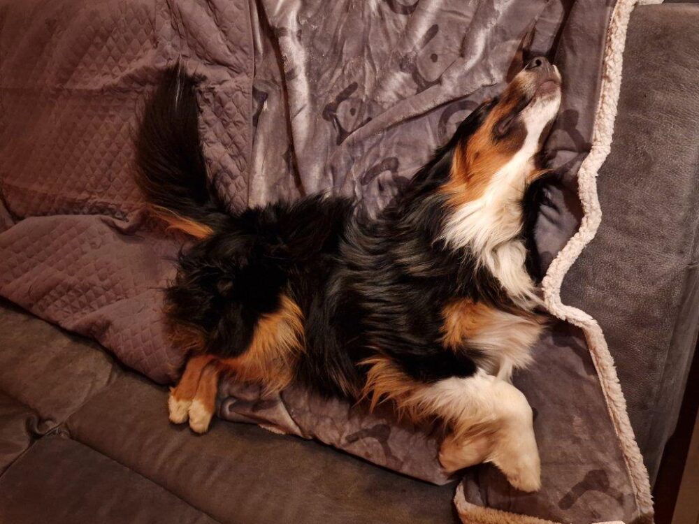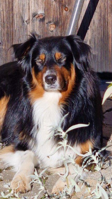 Trotz allem ist er ein echter Aussie mit allen Charaktereigenschaften. Er liebt sein Hundeleben, genießt Garten und Natur. Kuscheln kommt natürlich nicht zu kurz. Bett/Schlafräume und Couch is nicht! Er liebt es aber erhöht zu trohnen, Hundebett, Hocker, Gartenliegen. Vermutlich wegen dem Überblick.