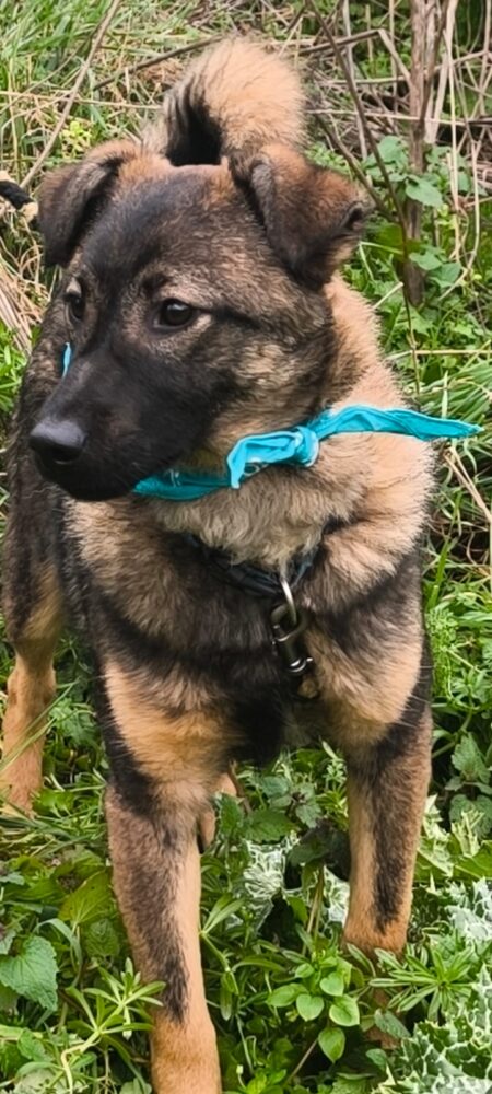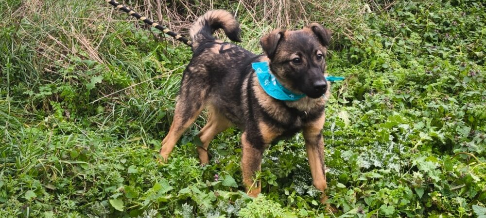OZZI ist ein Mischlingsrüde, geboren am 12.05.2025, mit einer Schulterhöhe von derzeit 41 cm.