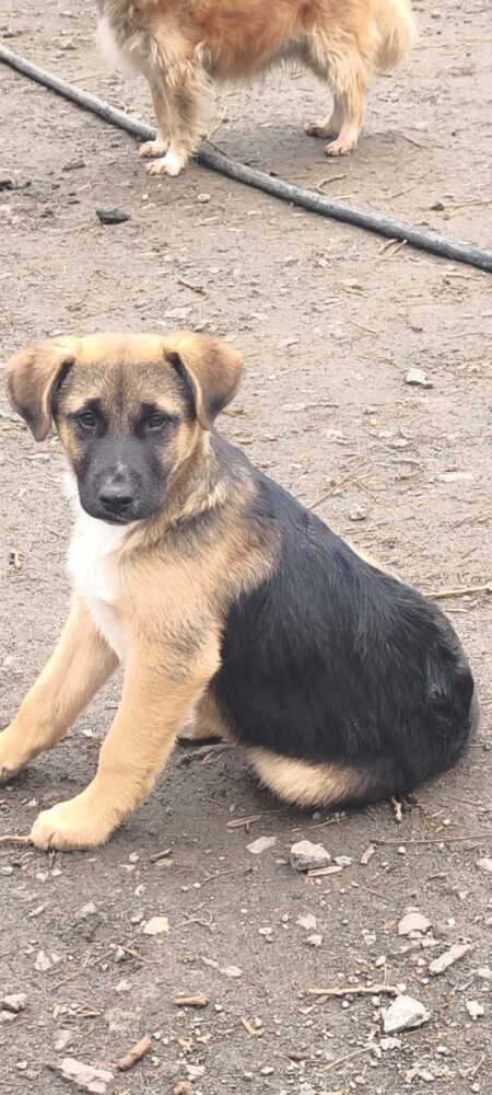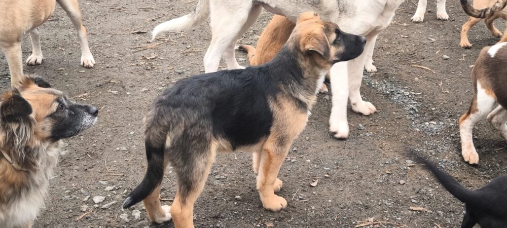 GEORGE ist ein Mischlingsrüde, geboren am 10.09.2025, der derzeit 36 cm misst und mittelgroß werden wird. Er ist der Bruder von Jas und Ronda.